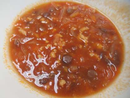 ミートソースの中に「レンズ豆」という豆が入っています(画像3枚目の丸い茶色のもの)直径5ミリから1センチ程度の、丸くて平べったい豆です。日本では珍しいですが、海外では一般的な豆だそうです。何千年も前から食べられていた?とか・・・