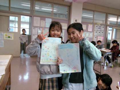 「たから島のぼうけん」の学習で、それぞれ物語を書きました。 ワクワクする素敵な絵本の完成です。