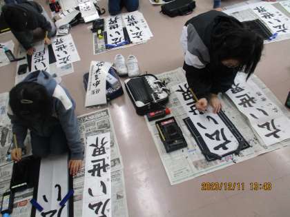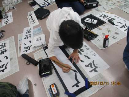 月曜日に行った「書き初め練習」の様子です。真剣に書いています。
