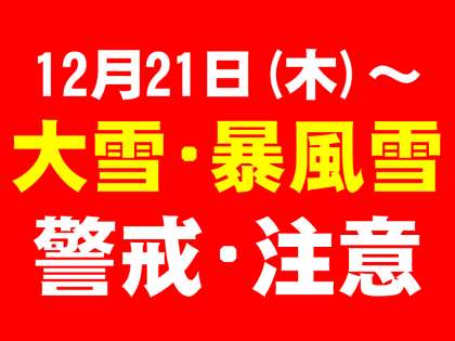 富山地方気象台によりますと、明日21日(木)から冬型の気圧配置が強まり、警報級の大雪となる可能性があり、警戒が必要とのことです。