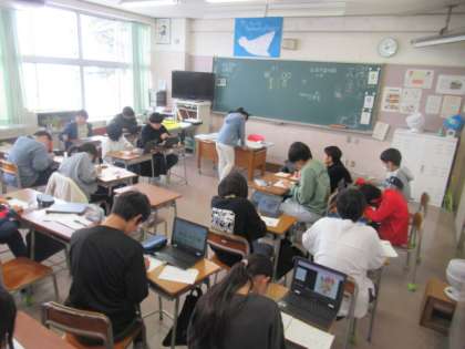 卒業文集の中の「マイページ」に取り組んでいます。自分の好きなことや将来の夢など、自分なりにデザインして表現しています・・・