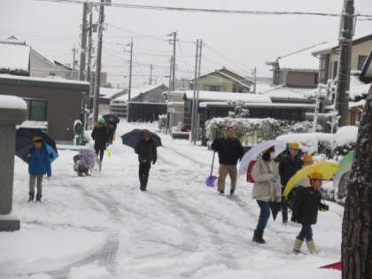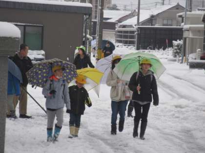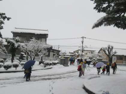 雪の朝となりました。「北陸の冬」という景色です。 がんばって登校しています。