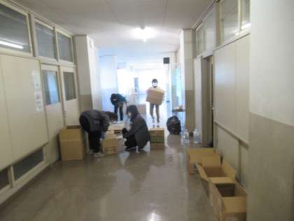 子供たちを9日(火)から受け入れられるよう、全教職員で片付け作業を行っています・・・