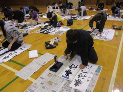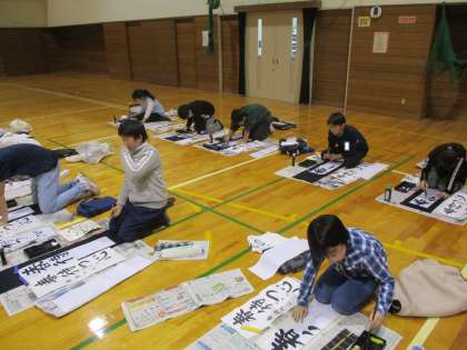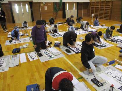 小学校で最後の書初大会を行いました。 一画一画ていねいに書き進めました。