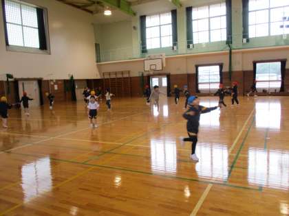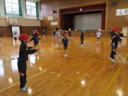 後ろ跳び、走り跳び、二人跳び・・・いろいろな跳び方で遊びました。
