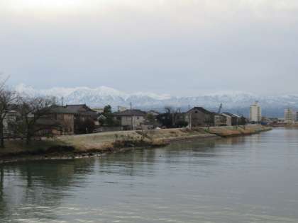 富山湾から白岩川の様子と学校の海抜の確認です・・・