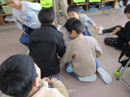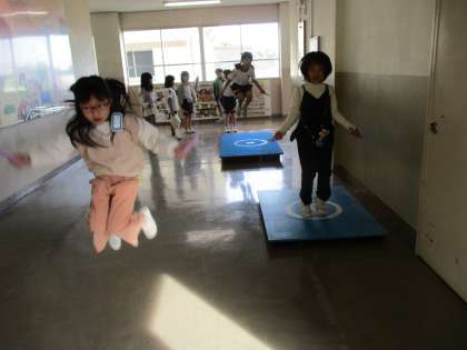 こまで遊んだり、縄跳びをしたり、オルガンを弾いたり・・・楽しそうです。