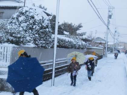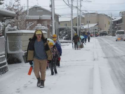この程度の積雪は、北陸の子、雪国の子なら、どうってことは、ない?