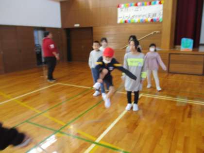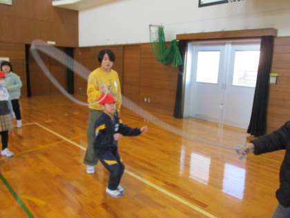 「長縄チャレンジ」がスタートしました。グループのお兄さんお姉さんとがんばっています。