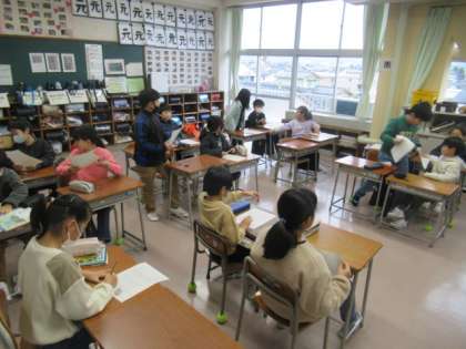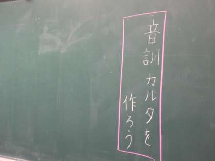 言葉の学習をしています・・・ どのような「音訓カルタ」ができ上がるのでしょうか? 楽しみです!