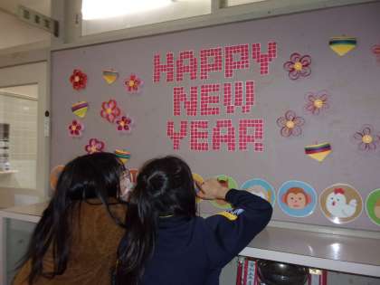 図書室の掲示を見ている子供たちがいました。何をしているのかというと、算数科で学習している面積の求め方を生かして、掲示物の文字の面積の求め方の工夫について話し合っているようでした。学んだことを生かしている姿が素敵です。