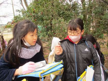 どんぐりから「芽」が出ているところ、桜の枝から「つぼみ」が出ている様子などを発見して、驚いていました。