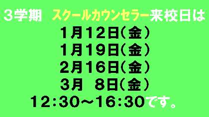 【再掲】3学期スクールカウンセラー来校日のお知らせ