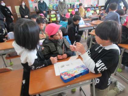センパイに「座り方」や「鉛筆の持ち方」などを教えてもらい・・・