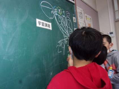 「わからない・・・」と言っていた友達に「教えるよ!」と言って、黒板を使いながら教え合いをしていました。最後には「Yさんできた!」とうれしそうでした。