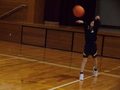ポートボールでパスの練習をしています。