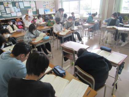 説明文について学習しています。自分一人で考えたり友達と意見を交換したり、中学校進学に向けて着実に進んでいます・・・