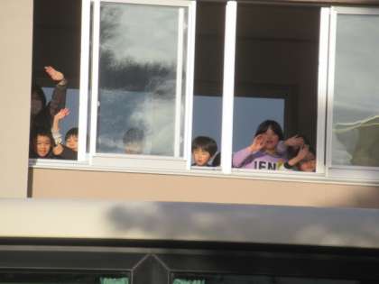 「行ってらっしゃーい!」と、下級生に見送られながら出発していきました!
