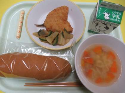 ・コッペパン ・牛乳 ・あじフライ