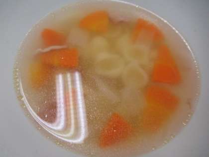 「マカロニスープ」には、貝型の「シェル(貝)マカロニ」がたくさん入っています。