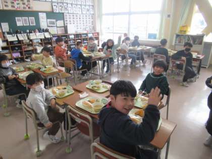 早々と給食準備を終え・・・ どこかへ向かいます。