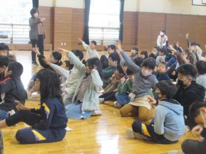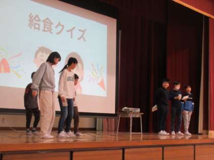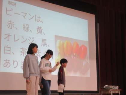 給食についてのクイズ(5問)をしてくれました・・・ 問題「ピーマンは、何色ある?」