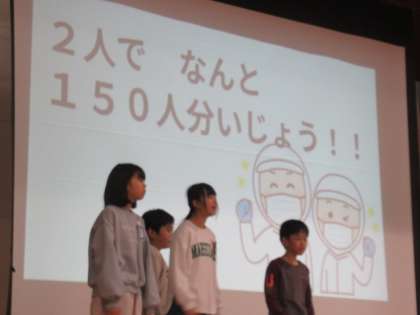 5・6年生 給食委員会 2 公開日 2024/02/19 更新日 2024/02/19 5年生 「調理員さんは、何人?」 「調理員さんは、何時から給食を作っている?」 たった2人で、全校150名分以上の給食を毎日作っておられることにビックリ! 調理員さんのインタビュー(ビデオ)や正しい箸(はし)の持ち方のビデオを見せてくれました・・・ 正しく箸(はし)を持ち、給食(食事)に感謝しながら・・・食べるようにしていきたくなりました! ありがとう!!