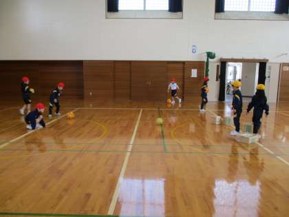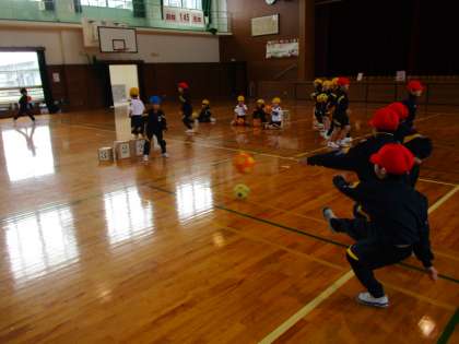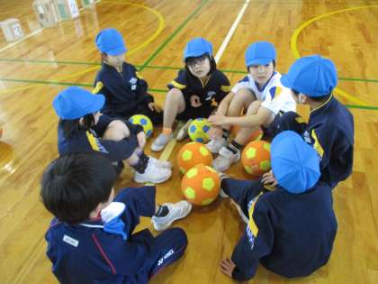 1年生 体育 公開日 2024/02/20 更新日 2024/02/20 1年生 「的をよく狙って蹴ることが大事だよ」 「一斉に蹴ればいいんじゃない?」 「おじゃまむしが別の方を見ている間に蹴ったら?」 チームで振り返り、作戦を考えながら取り組んでいます。