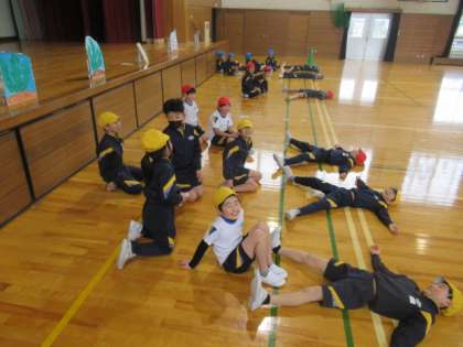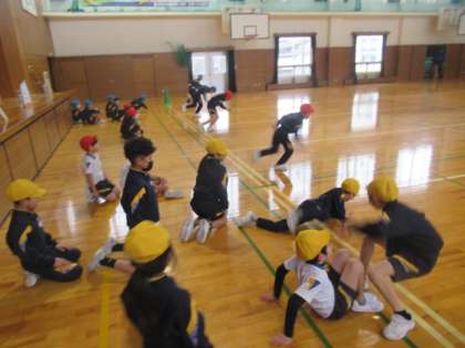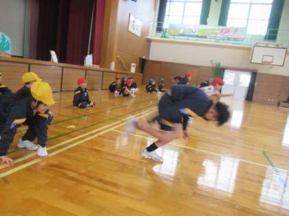 体力つくり・・・ 仰向けに寝ている状態から、素早く起き上がって、ダッシュ!