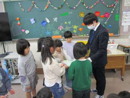 1年生 先生、ありがとうございました! 公開日 2024/02/29 更新日 2024/02/29 1年生 半年間お世話になった、お兄さん先生と今日でお別れです。 おはじきやあやとり等で一緒に遊んだり、お笑いをしたり・・・感謝の気持ちを込めて、集会をしました。 「先生に楽しんでもらえて、うれしかったよ」 「もうお別れなのが寂しい・・・」 「また会えるといいな」 先生、本当にありがとうございました! これからも応援しています!!