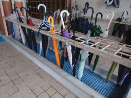 児童玄関の傘立てを見ると、使った傘を、きちんと巻いて立ててある子が多いですね。マナーが身に付いていますね。