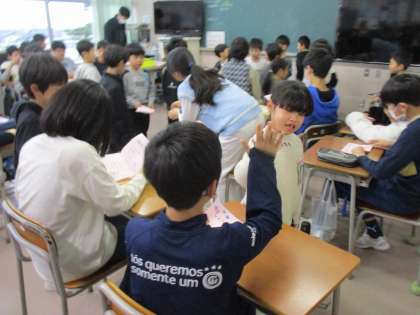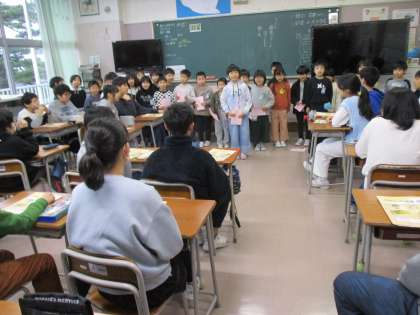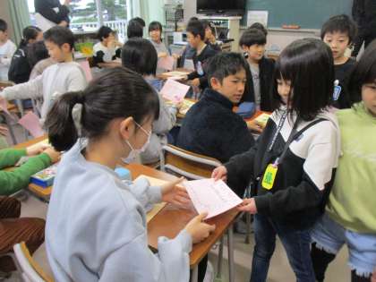 卒業おめでとう集会です。6年生へ招待状を渡しました。6年生のみなさん、お楽しみに!