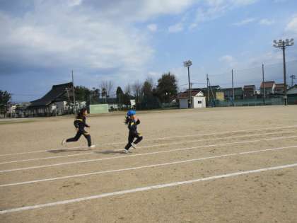 50m走のタイムを測定しました。思いっきり走りました。速くなったかな?