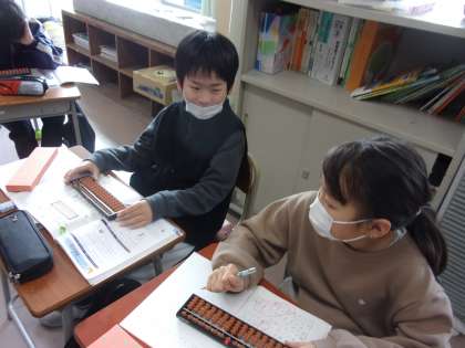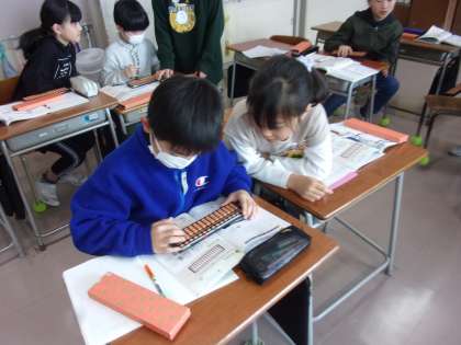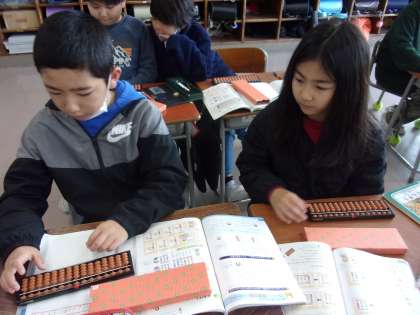 「昔の人って、大変だったんだね。」と言いながら、一生懸命にそろばんで計算をしていました。