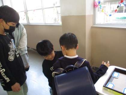 6年生 最高学年として1 公開日 2024/04/05 更新日 2024/04/05 6年生 最高学年2日目。今日は入学式です。ピカピカの1年生に名札を着けたり、教室やトイレへ案内したり・・・優しいお兄さんお姉さんです。