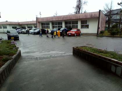 昨日のぽかぽか陽気から一変して、朝から雨。 子供たちは、安全に気をつけて登校してきました。