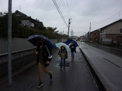 雨にも負けず、今日も子どもたちは元気に登校してきました。今日も全員出席です。