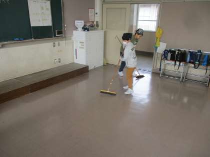 清掃では、自分たちで場所や掃除の仕方を決めて掃除に取り組みました。