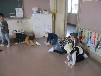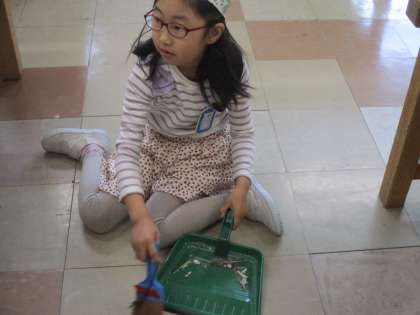 友達と協力しながら、すみずみまできれいにしています。一生懸命がんばる姿が素敵ですね。