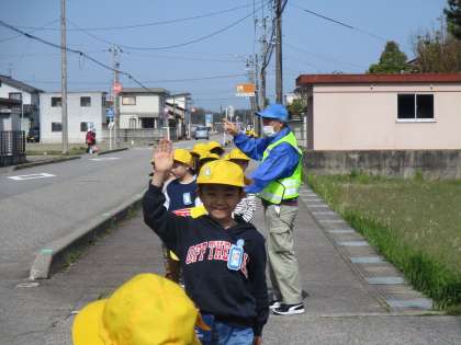 横断歩道がないところでも、しっかり止まって確認しています。