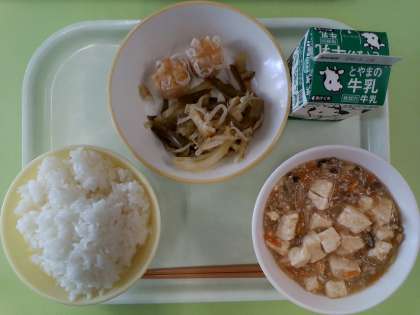 4月17日(水)今日の献立 公開日 2024/04/17 更新日 2024/04/17 給食室 ・ごはん ・牛乳 ・にんじんシューマイ ・茎わかめのチョナムル ・麻婆豆腐 検食、異常なし。 「ナムル」はよく耳にしますが、「チョナムル」という言葉に馴染みがありませんでした。調べてみると、「チョ=酸っぱい」「ナムル=和え物」と書いてありました。みなさん、ご存知でしたか。
