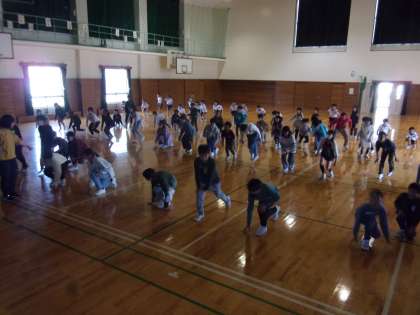 今日の体力つくりで、天瀬っ子ソーランを踊りました。久しぶりでしたが、体が覚えていたようです。楽しく踊っていました。