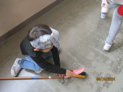 机の下やオルガンの後ろなど、ほこりがたまっているところを上手に見つけて、掃除しています。