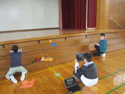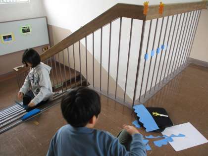 ここから見ると・・・。奥行きを使って、楽しく見える作品をつくっています。