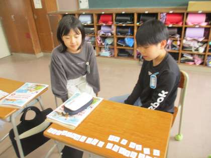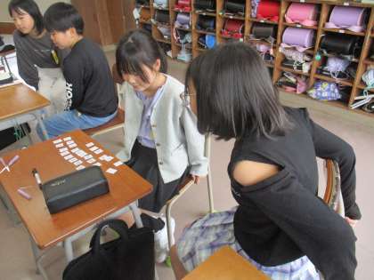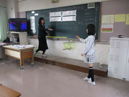 単元のゴールには自己紹介をします。名前の綴りを伝えるために、アルファベットの復習をしました。