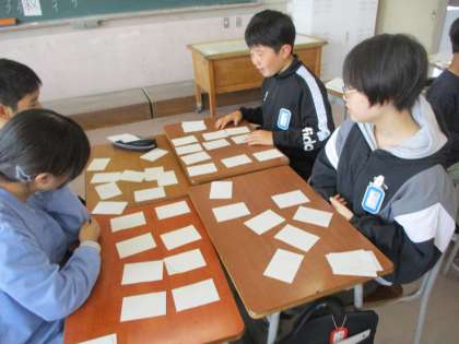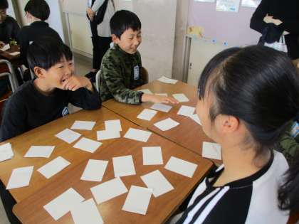 部分と読み方が共通の漢字を集め、神経衰弱をしました。まだどんな字があるかな?お家でも、ぜひ見付けてみてくださいね。
