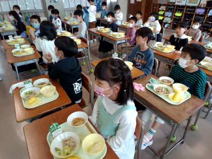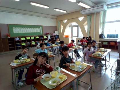 1年生教室でも、みんなモリモリ食べています。