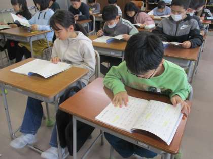 朝学習等の時間に漢字の音読をしています。 4年生ではじめて習う漢字もたくさん読めるようになってきました。