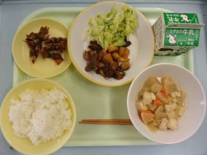 ・ほたるいかの竜田揚げ  ・ゆでキャベツ