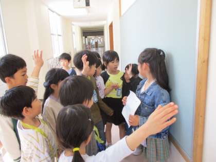 2年生 1年生に学校の案内をしたよ 公開日 2024/04/26 更新日 2024/04/26 2年生 1年生に学校を紹介しました。 楽しんでもらえるよう、クイズを出したり、正解したときには「すごいね!」と優しく声をかけたりしていました。 お兄さん、お姉さんとして、1年生を見守る姿が立派です。